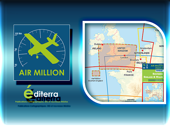 La gamme Air Million, éditée par la société française Editerra, regroupe des cartes aéronautiques VFR destinées aux pilotes d'aviation légère. Claires, complètes et actualisées chaque année, elles offrent une lecture optimale de l'espace aérien, des zones réglementées, des aérodromes et des aides à la navigation.